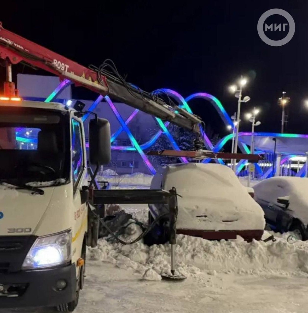 В Ноябрьске стали эвакуировать машины возле аэропорта. На штрафстоянку попали не менее трёх автомобилей, которые стояли на парковке в неразрешённое время. Накануне спецтехника не смога убрать снег на территории аэропорта из-за брошенных там машин.