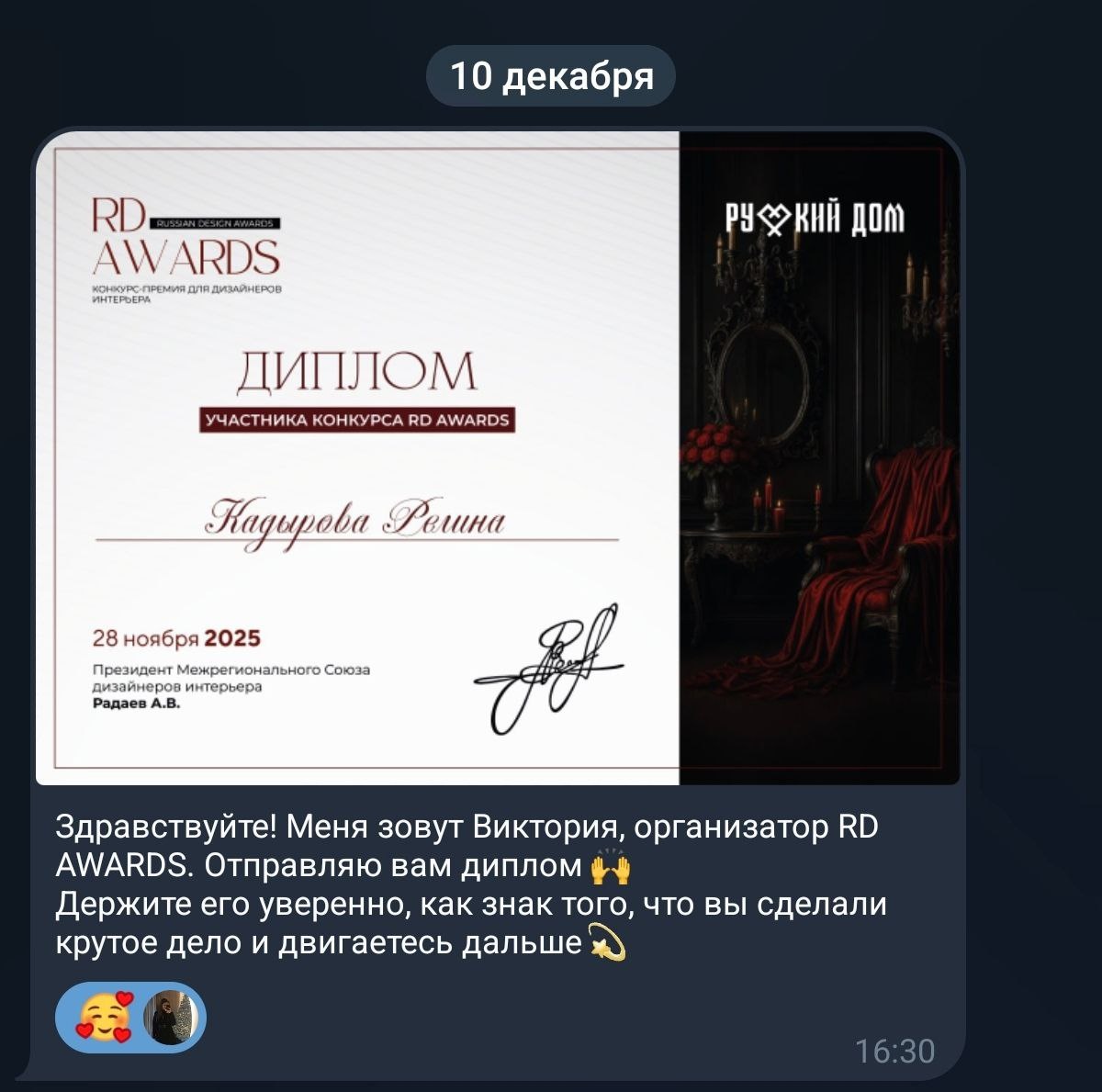 Ну какова красота 🥰 Приятно однако хоть и за участие Конкурс RD AWARDS Ссылка на проект: ЖК Headliner гармония света и пространства + Диплом в копилку)