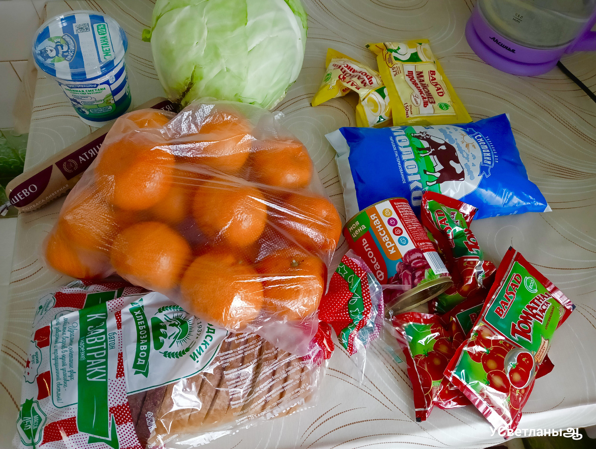 Мне пишут, почему я покупаю всегда одно и то же из продуктов? А что подразумевается под словом "одно и то же", то, что нет в каждодневных покупках мяса или колбас? Так мы не едим мясную продукцию каждый день, его мы едим очень редко, ну вот такие мы не мясные. Колбасы тоже не идут в каждодневный рацион, поэтому то, что мы покупаем каждый день, кажется однообразным. А я благодарю Бога, за то, что Он даёт нам возможность покупать эти продукты и здоровья тем, кто их производит и кто их нам продаёт. Вот сегодняшние мои покупки и они не кажутся нам однообразными. А ещё я вам больше скажу, — и опять я сегодня буду варить борщ и опять с фасолью.😂 Однообразно? Однообразно. После приготовления борща, мне вдруг захотелось блинчиков. Я по-шустрому налила молока в миску, вбила туда два яйца, сахара и добавила немного подсолнечного масла. Всё это хорошо перемешала и затем добавляю по чуть-чуть муки. Первый блин не комом. Красивый румяный блин. Мне очень нравится печь блины, это доставляет мн