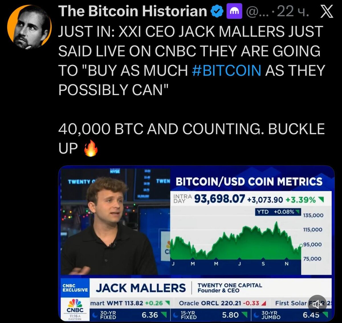 Генеральный директор XXI Джек Маллерс только что заявил в прямом эфире CNBC, что они собираются «купить как можно больше #BITCOIN ». 40 000 BTC И ЭТО ДАЛЕЕ. ПРИСТЕГНИТЕСЬ 🔥