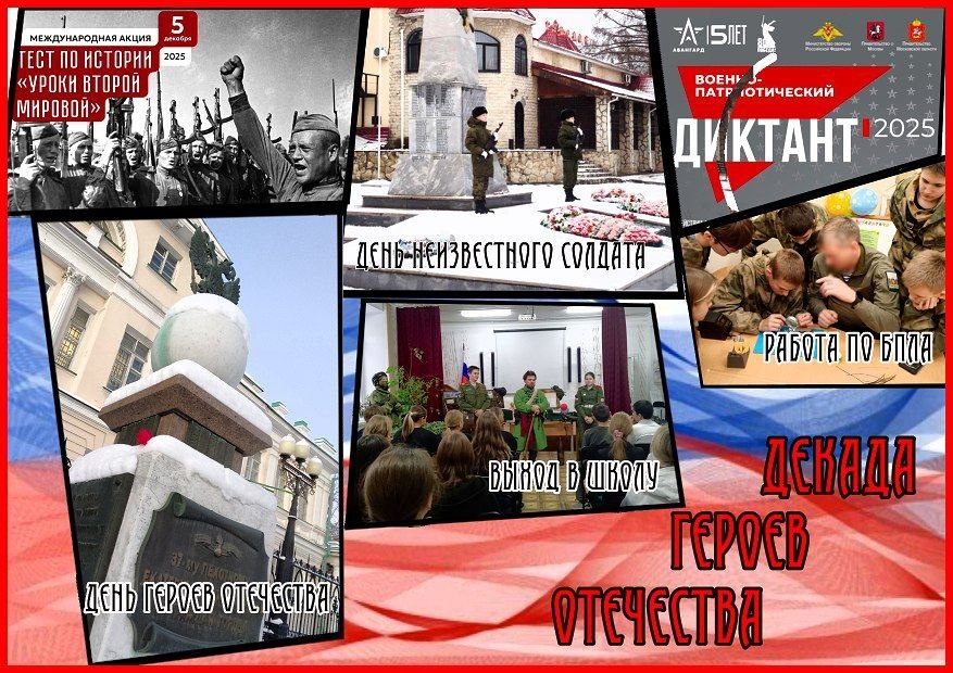 С 1 по 10 Декабря мы проводили декаду Героев. И вот мероприятия где удалось поучаствовать нашим воспитанникам: 🟢Тест по истории "Уроки Второй Мировой" 🟢Военно-патриотический диктант 2025 🟢Несение почетного караула в День неизвестного солдата 🟢Возложение цветов Героям Отечества в Екатеринбурге 🟢Выход в школу в рамках декады героев