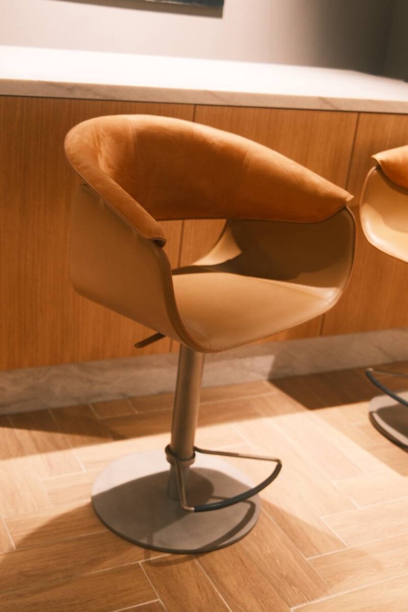 У нас в шоуруме — обновление, которое хочется рассматривать медленно, с удовольствием. Барные стулья Lola от Fasem уступили место новому впечатлению — Airlux Bar BT. Airlux будто меняет роли: выглядит как изящное кресло, но на самом деле — полноценный барный стул. Высокий, статный, с аккуратной стальной основой и плавной регулировкой высоты. Поворачивается мягко, сиденье комфортное, спинка поддерживает удивительно деликатно — и всё это без потери лёгкости в дизайне. Натуральная кожа на сиденье, спинке и даже на рычаге регулировки — это та самая итальянская внимательность к деталям, которая чувствуется с первого прикосновения. Airlux создан для тех, кто хочет посадить гостей за барную стойку, но по уровню комфорта — будто приглашает их в кресло. Приезжайте в шоурум и попробуйте сами. Тут точно есть что почувствовать.