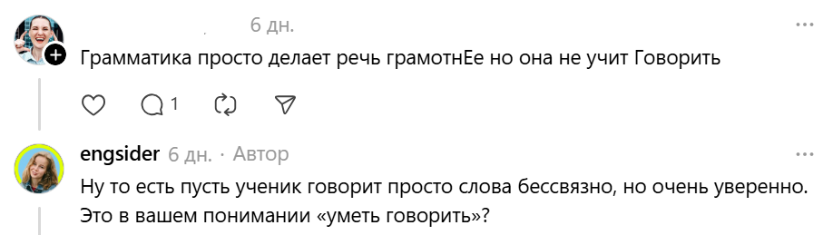 В волшебную таблетку верят даже педагоги🪄 Недавно в Threads у меня снова вспыхнул спор: «Английский можно и нужно учить без грамматики. Учебники — зло, достаточно сериалов и песен».