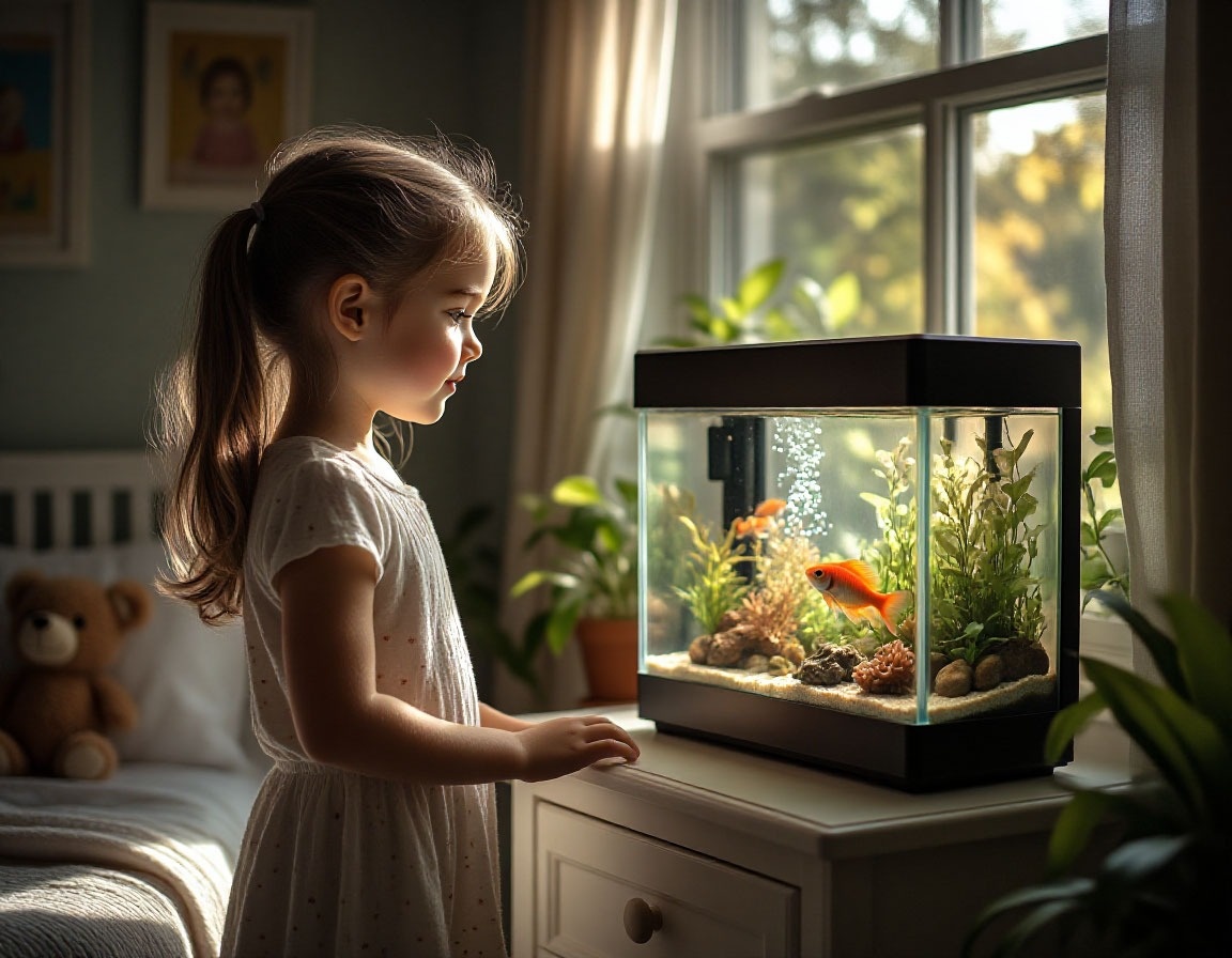 Почему именно аквариум? Разведение рыбок давно перестало быть занятием лишь взрослых любителей природы. Современные родители всё чаще приобретают аквариумы специально для своих малышей. Но зачем нужен аквариум ребенку и какую пользу приносит такое хобби? Развитие наблюдательности и концентрации внимания Наблюдение за плавающими рыбками успокаивает нервную систему ребенка, способствует развитию внимательности и способности концентрироваться. Дети учатся видеть красоту даже в мелочах, осознавать жизнь маленьких существ вокруг них. Это развивает важные качества, необходимые для успешного обучения в школе и дальнейшей жизни. Формирование чувства ответственности Забота о питомцах учит детей заботиться о ком-то другом помимо себя самого. Они начинают понимать важность регулярного ухода, кормления и поддержания чистоты среды обитания. Ребенок учится отвечать за последствия своих поступков, будь то регулярная чистка аквариума или контроль уровня воды. Стимуляция познавательной активности Сод