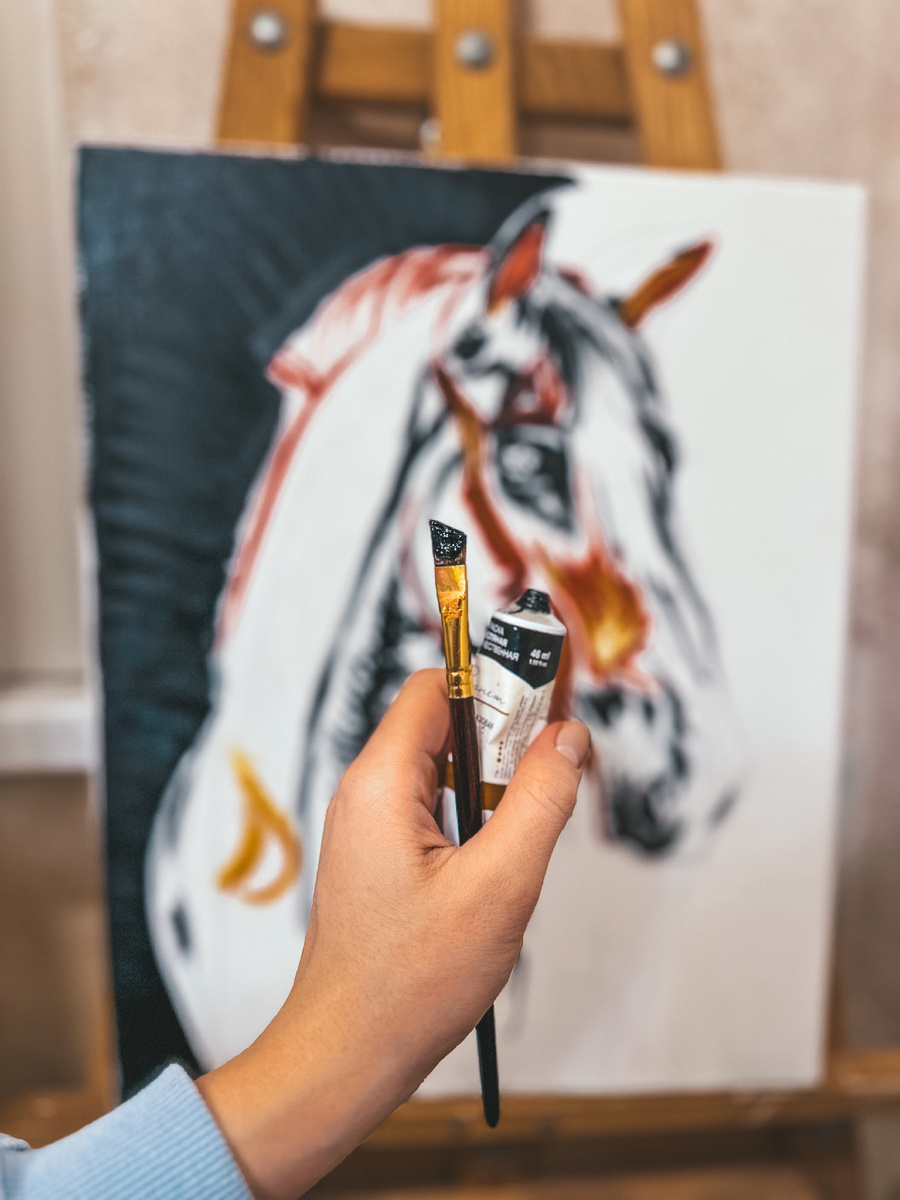 Не знаю почему, но все мои картины я начинаю писать именно в осенне-зимний период. 💫 Вот и сегодня 10 декабря 2025 года появилось время для новой работы. Я решила выполнить ее в честь животного по восточному гороскопу 2026 года-красной огненной лошади. Картина будет выполнена в чёрных тонах с красными огнями. Следите за новостями в дзене🫶