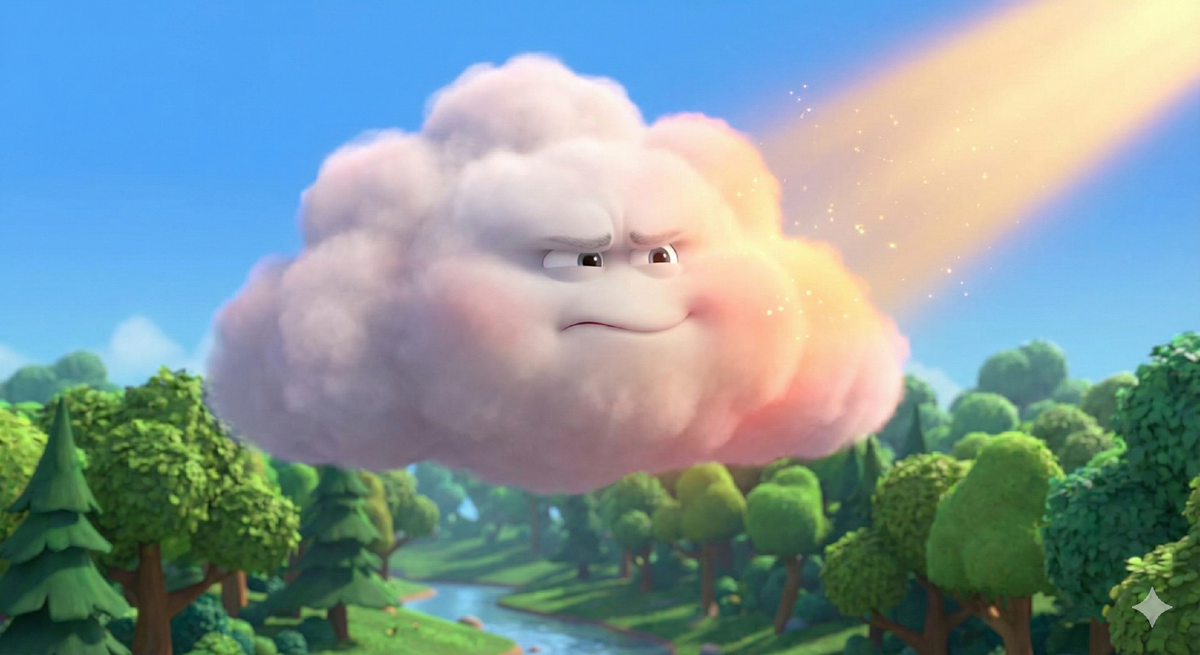 Герой сказки: Маленькая [Животное: например, Тучка] по имени [Имя ребенка], которая закрывает небо, когда на нее смотрят «неправильно».