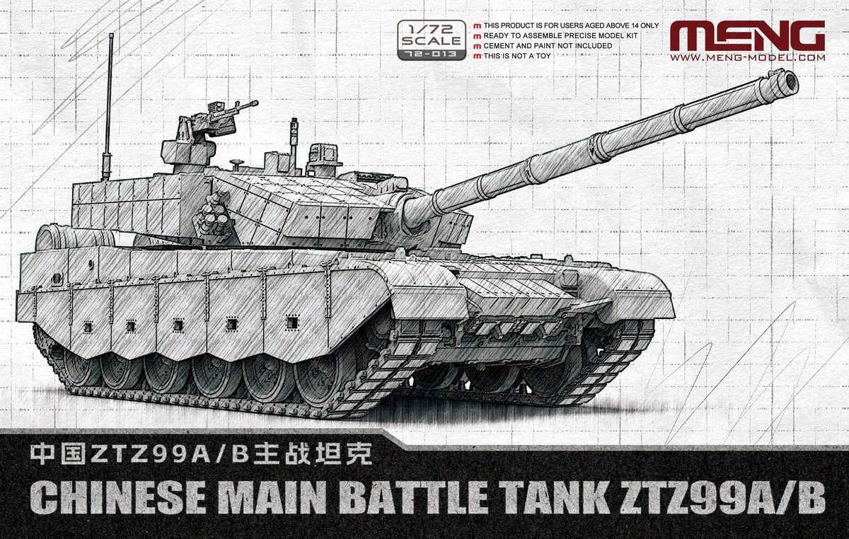 Китайская Meng Model в декабре выпустит модель китайского танка ZTZ99A/B в масштабе 1/72: Chinese Main Battle Tank ZTZ99A/B (каталожный номер 72-013)