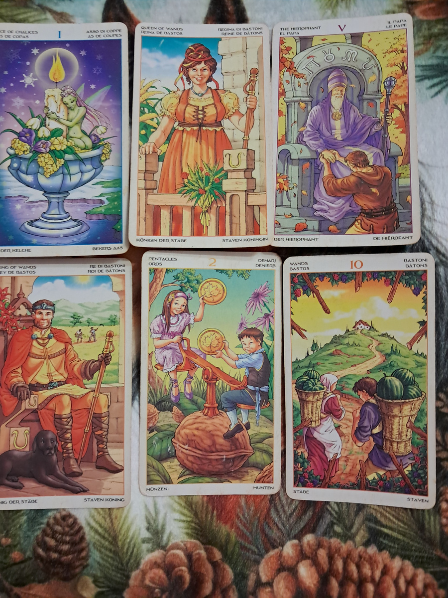 Послание дня на 14 декабря от таро Карта дня — Колесо Фортуны — говорит о важном поворотном моменте, неожиданных переменах или кармических событиях. Сегодня судьба может сделать неожиданный поворот, поэтому будьте готовы к сюрпризам и открыты новым возможностям. Толкование ваших карт: 1. Туз Кубков — Новые чувства, эмоциональное обновление, возможность любви или духовного пробуждения. Сегодня может прийти важное откровение или предложение, касающееся сердца. 2. Принцесса Жезлов — Энтузиазм, смелость и жажда приключений. Эта карта советует действовать с уверенностью и детским любопытством, не боясь неизвестности. 3. Иерофант — Мудрость традиций, духовное руководство, потребность в наставничестве или поиске высшего смысла. Возможно, вам стоит прислушаться к голосу опыта — своему или чужому. 4. Король Жезлов — Сильная, харизматичная личность, лидерство, страсть и решительность. Вы можете проявить (или встретить) эти качества сегодня. 5. 2 Пентаклей — Необходимость балансировать между дв