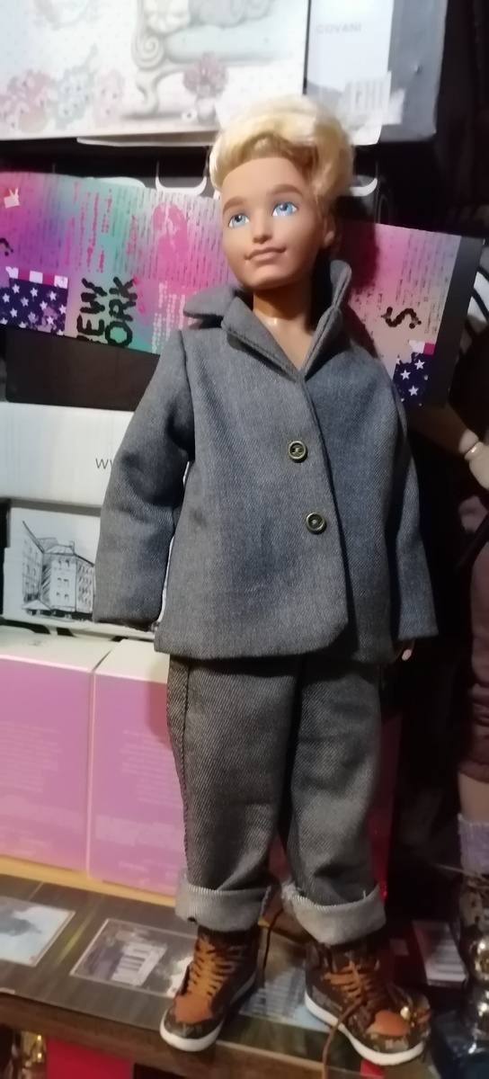 Привет) Кена из серии Dream Besties я назвала Брендоном... Почему - не знаю.))). Кстати, что-то есть у него от Бредли Купера - голубые глазки, наверное... Как думаете?))) Как водится (у меня😁) , я нашла Брендону одежку совсем не из его серии, вообще даже не кеновскую... Он так-то вообще один такой Кен из серии DB... Но получилось неплохо) Давайте посмотрим: Такой задумчивый стоит.... Интересничает перед девчонками, не иначе))) Конечно, вся одёжка неродная... Пиджак и брюки -"от паолки", кроссовки- брелки... Бруклин очень заинтересовалась этим кукольным гражданином) Кстати, это она сама "привалилась" к нему, изначально стоя просто рядом с ним на полке... Случайность? Не думаю))) Я не против, пусть секретничают))) Теперь Брендон примерит другой образ: Нет, я все понимаю - мачо-мэн, но челочку-то надо убрать))) Вот так получше будет))) Костюм этот даже не "от паолки", а вообще от моих кукол тильда))) Вот таких, например: Короче, всё, что нахожу в кукольных ящиках, всё идет в