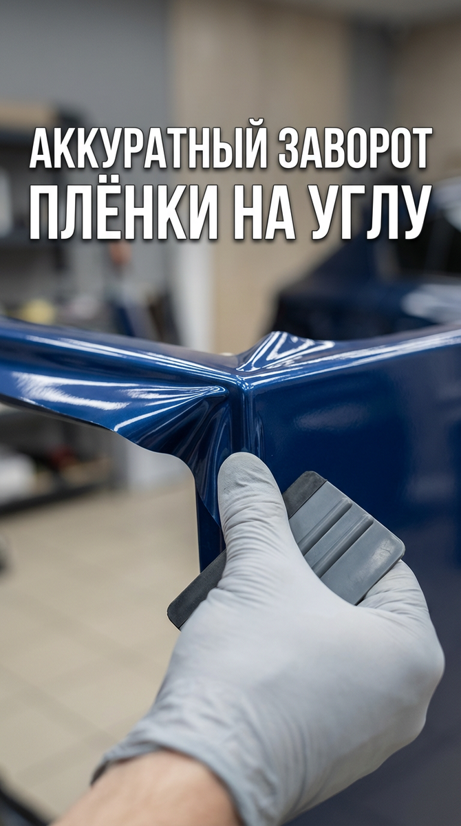 При оклейке автомобиля плёнкой мы чаще всего смотрим на большие плоскости — крыло, капот, двери. Но всё прячется в нюансах: реальное качество работы видно по углам и кромкам. Именно там плёнка испытывает максимальное натяжение, чаще всего появляются заломы, «стрелки» и отслоения. В этом посте разберём, как аккуратно заворачивать плёнку на углу элемента, чтобы край выглядел чисто и служил долго. Почему углы — проблемная зона На углах детали плёнка должна: перейти с плоскости на торец, затем её надо «завернуть» во внутреннюю часть, при этом сохранить равномерное натяжение. Если просто тянуть винил в одну точку и докатывать ракелем «как получится», вы почти гарантированно получите: стрелки и мелкие морщины, вероятное изменение цвета от перегиба либо перетяга, риск отслоения плёнки по кромке через время. Покажу на примере вот такого угла двери Подготовка: залог аккуратного заворота Чистый и обезжиренный край.