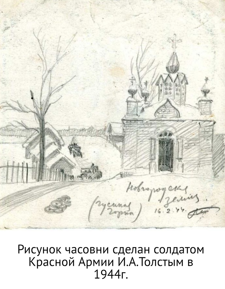 Рисунок сделан солдатом, во время освобождения Батецкого района, Новгородской области, село Горка, 16 февраля 1944 года.
