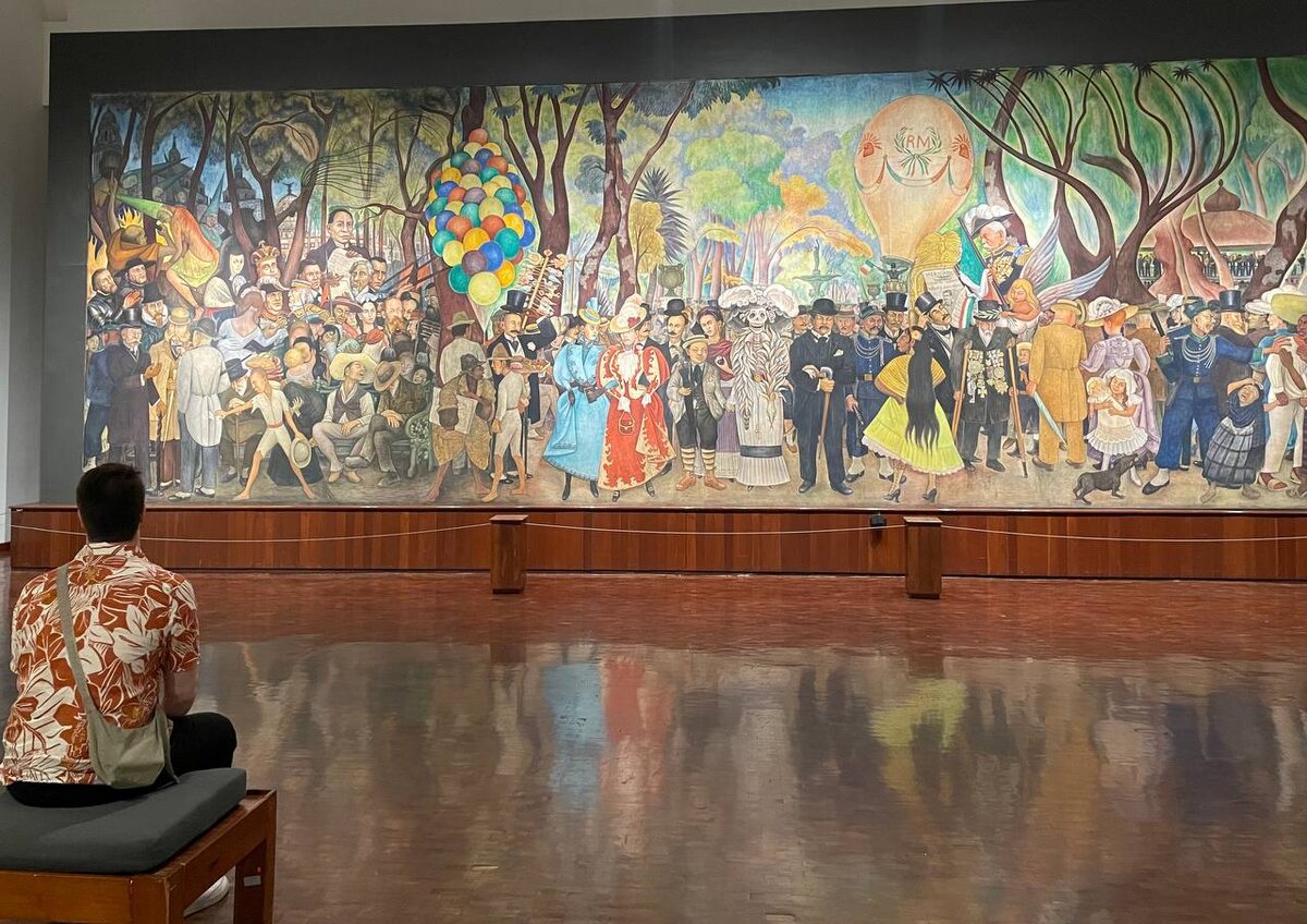 На центральную площадь я пошла, потому что подумала, давненько я не была в Национальном дворце. Туда может придти теоретически любой желающий. Особенно желающий посмотреть на шикарные работы Диего Риверы. Собственно, за тем туда и надо идти. Однако, любой да не очень. Как мне объяснили в информационном центре, каждый день дают 100 входных билетов. Билеты дают начиная с 10 утра, но обычно их тут же и разбирают. Так что, чтобы получить заветный билетик, приходить лучше в 9.30 Билеты бесплатные, нужно только предъявить удостоверение личности. Надо же, году в 2015 туда можно было пройти совершенно спокойно. Впрочем, и в музей Фриды Кало мы тоже спокойно приходили и покупали билеты на месте. Сейчас же билеты продают онлайн и их надо покупать недели за две как минимум. Вот такой всплеск туризма в Мехико и интереса к Фриде и Диего. Обломавшись с Национальным дворцом, я на этом не оставила попытки прикоснуться к творчеству Диего Риверы. Благо неподалёку был музей марала его авт
