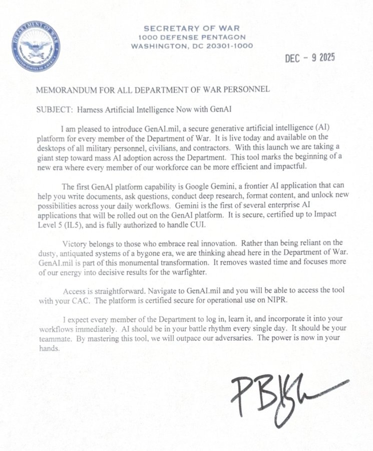 В ответ на пост Here’s a copy of Hegseth’s new AI order The Pentagon will basically use Google Gemini to research and write documents ‘AI should be in your battle rhythm every day’ — WTF does that even mean? H/T Ken Klippenstein