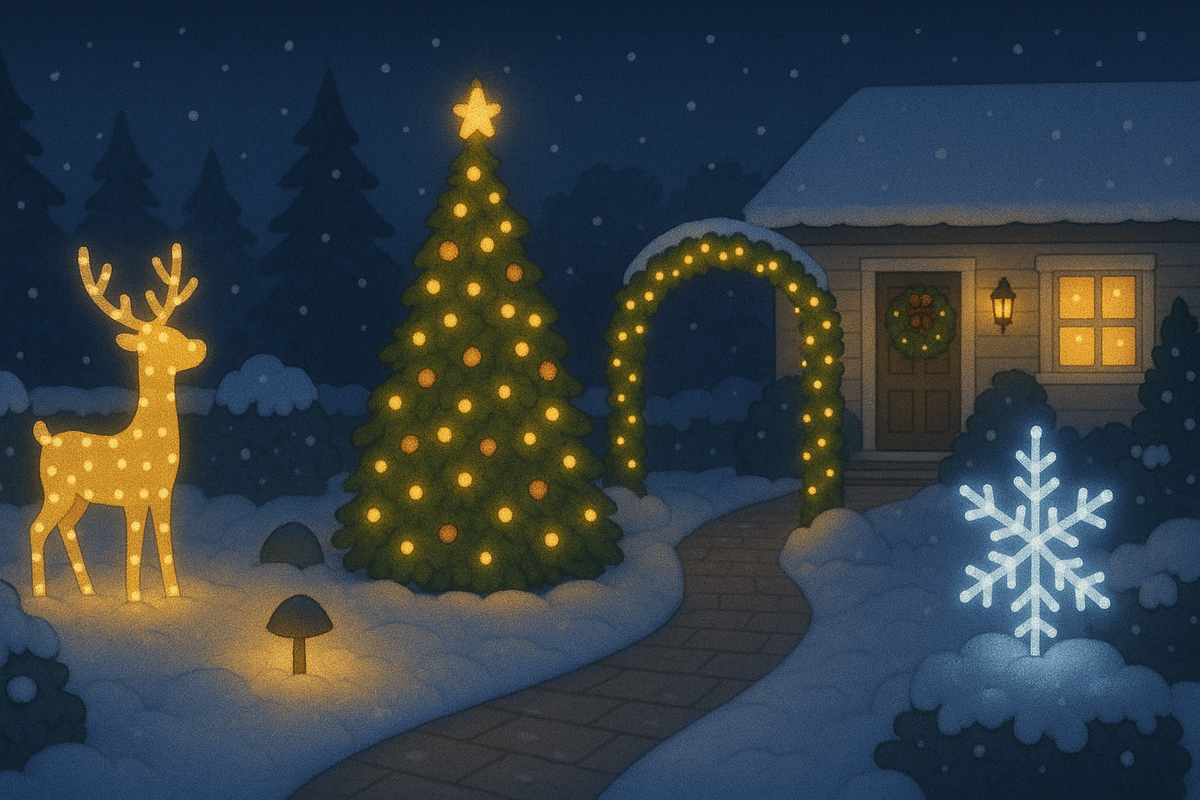 Как украсить сад к Новому году: световые фигуры, ели и арки без лишней перегрузки