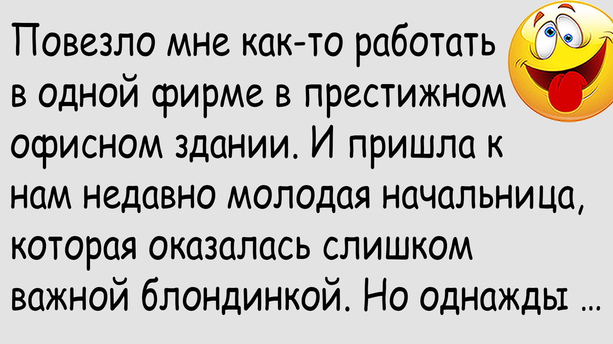 Работал я как-то в одной фирме на четырнадцатом этаже. Это было такое престижное офисное здание, в котором располагались офисы достаточно успешных компаний. И да, там платили достаточно хорошо. Можно сказать, даже очень хорошо. А еще и коллектив дружный был – никто никого не подсиживал, никто никому работать не мешал. Был, правда, один нюанс – с начальниками нам не везло. Во-первых, они у нас постоянно менялись. Во-вторых, они какие-то надурные попадались. То не работали толком, и другим не давали. Мы с одного совещания на другое бегали. То, наоборот, бурную деятельность изображали, и мы до ночи засиживались. А бывали и просто слишком важные и ставили из себя пупов Земли. Да таких, что на кривой кобыле к ним не подъедешь. Понятное дело, что они по блату туда устраивались, как родственники или знакомые Гендиректора. Ну да ладно, мы свою работу знали и увольнять нас никто не собирался. А тут, недавно, новую начальницу нам презентовали. Она оказалась весьма эффектной блондинкой. Да еще и