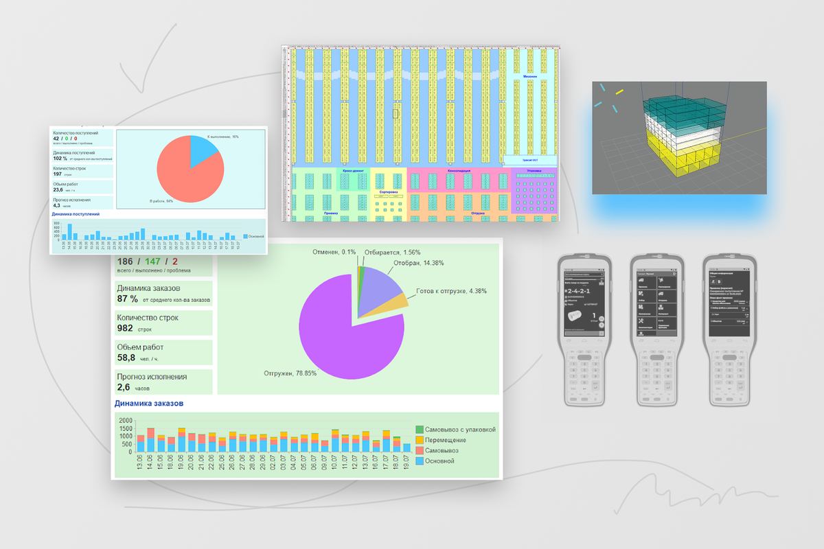 Алгоритмы системы позволяют делать операции параллельными, сокращая время холостого пробега у персонала и техники.