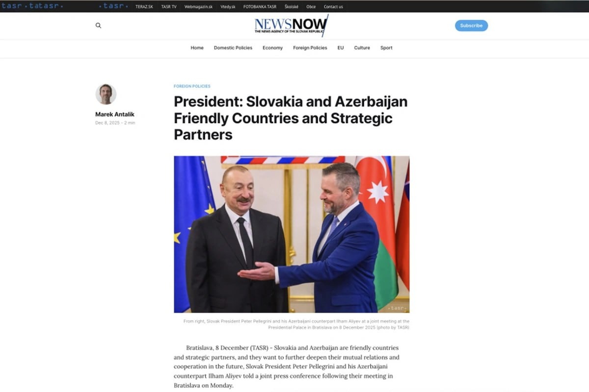 🇦🇿 Визит Президента Азербайджана в Словакию - в центре внимания зарубежных СМИ