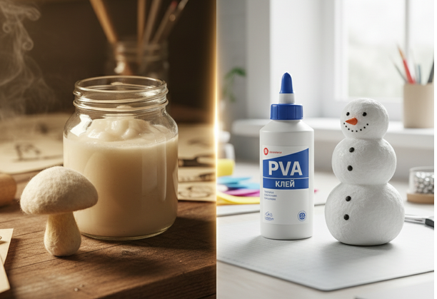 Секреты качественного клея для идеальных работ! Очень рада приветствовать всех подписчиков и гостей канала "Быть добру"! Сегодня я раскрою секреты качественного клея, чтобы ваши игрушки выглядели "дорого" и долгие годы оставались идеальными. Представьте такую ситуацию, вы только начали заниматься ватной игрушкой, накрутили идеальный «грибочек», а через полгода он пожелтел и стал похож на старый сухарь? Или, может быть, ваша игрушка на ощупь напоминает дешевый пластик, а не теплый винтаж? Все дело в связующем веществе. Клей — это фундамент. Если фундамент плохой, дом (или снеговик) долго не простоит. Сегодня я хочу устроить баттл двух титанов: классического картофельного клейстера и современного клея ПВА. Претендент №1: Картофельный клейстер (Классика) Это именно тот состав, которым пользовались артели в царской России и в