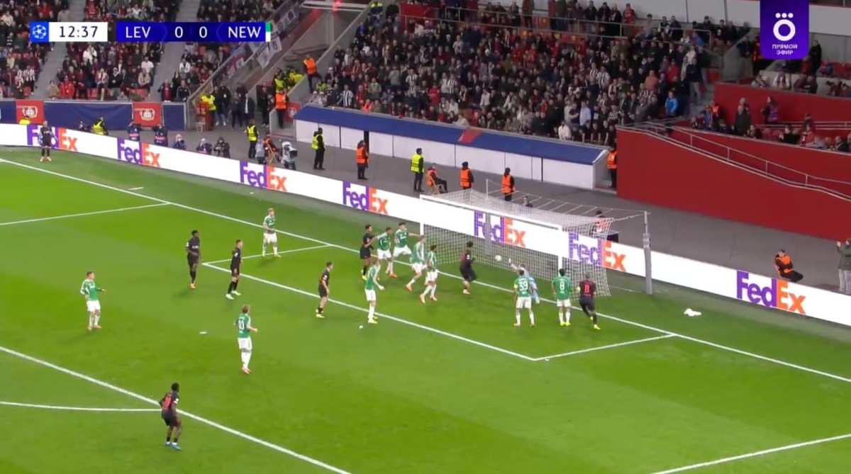 Пятая точка Гимарайнса из «Ньюкасла» помогает «Байеру» открыть счет. Вот такой автогол