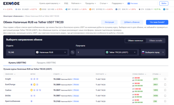 Для удобства сравнения условий и выбора лучшего пункта, используйте независимый сервис мониторинга обменников криптовалют Exnode. Там вы сможете изучить актуальные курсы, репутацию площадок и оставить заявку. Также, если вам требуется оплатить Инвойс или провести любой другой международный платеж, то загляните в новый раздел — мониторинг платежных агентов, где собраны проверенные решения для международных расчетов.