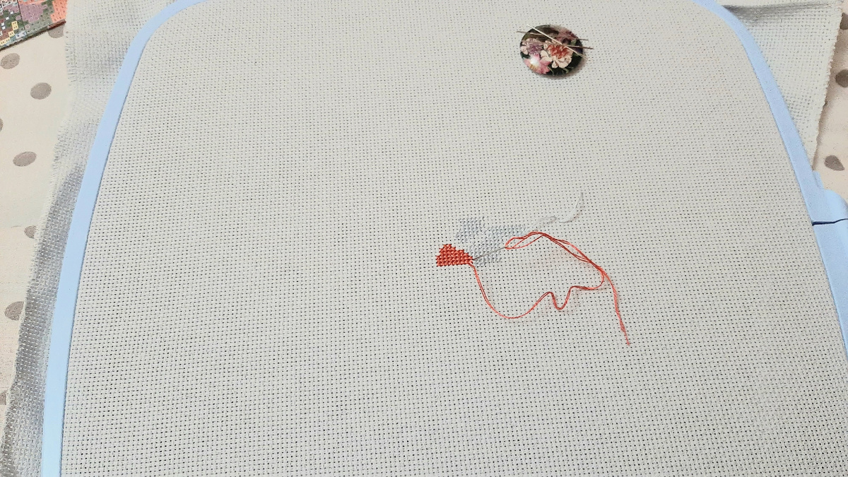 🙋♀️ Всем здравствуйте. Три дня и три ночи - шучу. Частично. Два вечера ушло на то, чтобы оверложить приличный отрез канвы. Как писала она 16 каунта. Тонковата. И край норовил превратиться в бахрому. Оверложила ручками в каждую клеточку. По высоте чередовала то три клеточки, то четыре. Разноуровневая стяжка. Так как побоялась, что одноуровневая, при нечаянном натяжении канвы на пяльцы, так и поползет стянутым валиком, оставляя голые переплетения. И вот на третий вечер мои старания увенчались успехом. Края канвы обработаны. И я решила перед сном, чтобы совсем сладко спалось, вышить пусть с десяток крестиков, но начало положить. Запялила в "нюрки". Канва мяяягкая. Проблем с этим не возникло. Зажим пялец завинтился до осноаания, как будто канва и не существует в зажиме пялец. Мулине нарезано, как по мне, то коротковато. Но не критично. В меру шелковисто. Очень неплохо уж не знаю как и написать, мулине ложится, или крестики кладутся. 🤣 Но результат порадовал. Что крестики, что пол