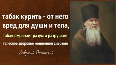 "Пишете, что не можете оставить табак курить. Невозможное от человека – возможно при помощи Божией, только стоит твердо решиться оставить, сознавая от него вред для души и тела, так как табак расслабляет душу, умножает и усиливает страсти, омрачает разум и разрушает телесное здоровье медленной смертью.