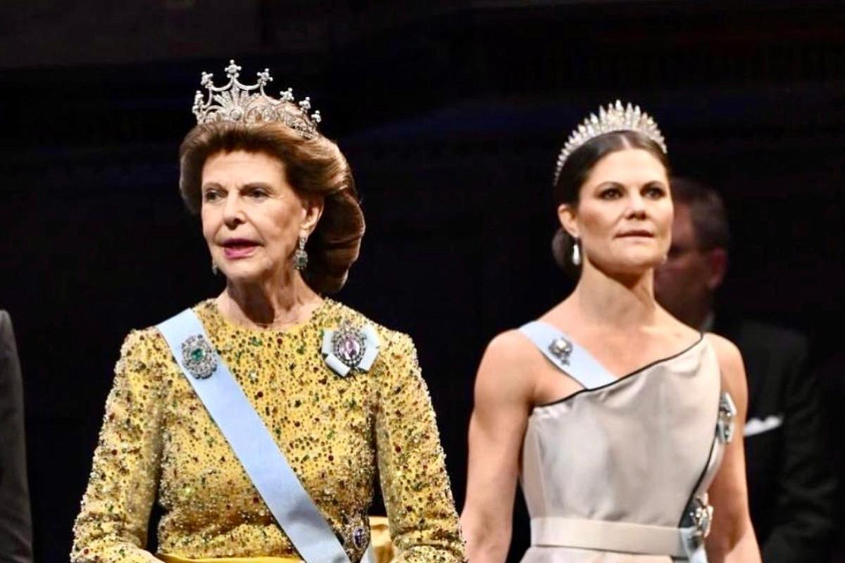 — король Карл XVI Густав с семьёй. Шведский двор снова напомнил, что научный праздник здесь не обходится без королевских тиар