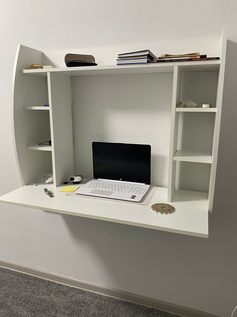 Раздражает маленькая спальня? Не спеши расстраиваться - есть много способов расширить пространство. Мы не будем ломать стены или подвешивать одежду на потолок , обойдёмся более стандартными решениями. Самый лучший способ сэкономить место - парящая мебель. Комоды , шкафы , столы и даже кровати можно подвесить. Я не стала сильно экспериментировать и начала с малого. Отказалась от огромного компьютерного стола, в котором не было никакого смысла. Показываю идеальное решение проблемы. Подвесной стол был приобретен на озон по разумной цене. Вопрос решился за 4500 рублей. Слюни конечно текли на подвесные столы трансформеры, где столешницу можно поднять к стенке, но жаба задушила как обычно. Поэтому теперь именно этот белоснежный друг радует мой глаз. Посмотри как уютно он вписался в интерьер, вроде бы мебели много, и комната очень узкая, но пол свободен и это визуально расширило пространство. Да и стул под него прекрасно заезжает. Если тебе надоела твоя заставленная маленькая комната ,