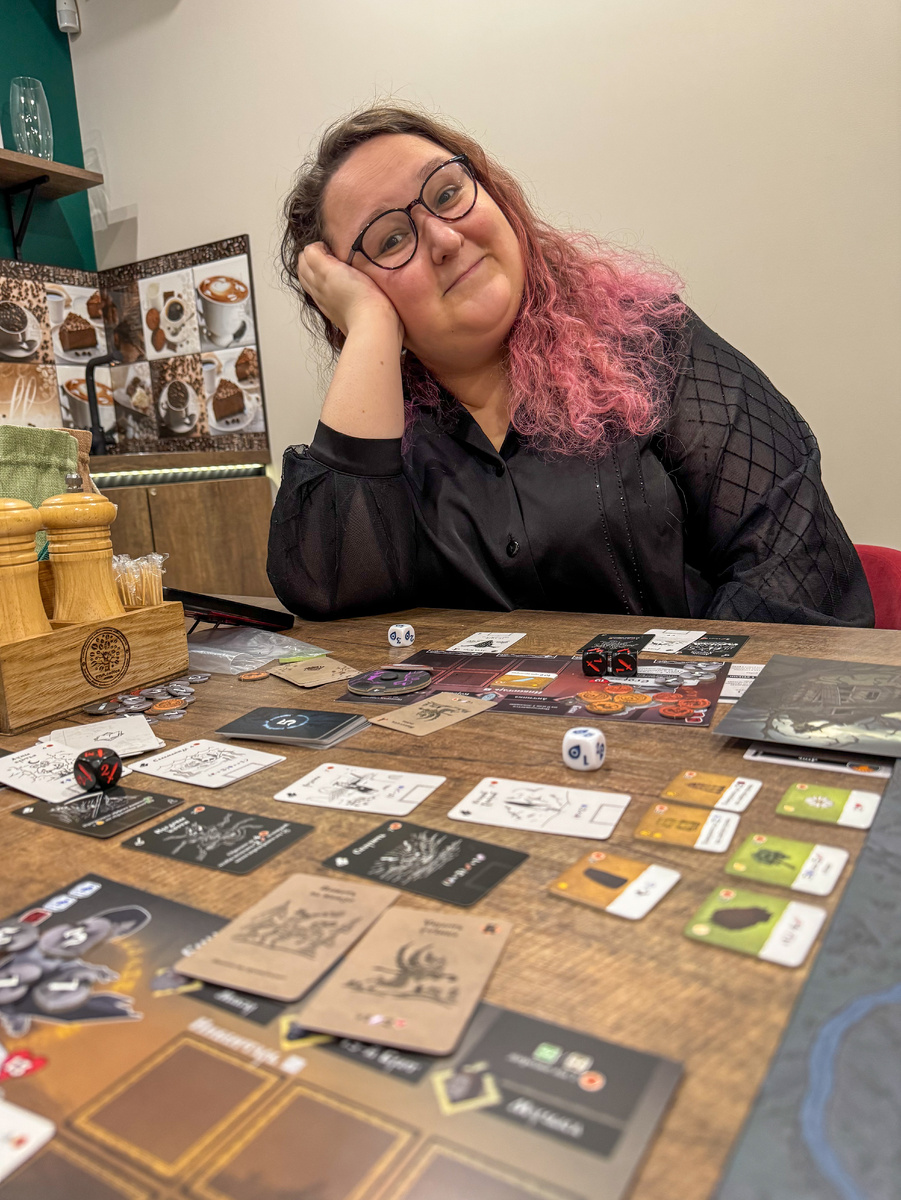 Что касается состава, я играла всеми — и по ощущениям вдвоём просто обычно всё даётся посложнее (хотя там добавляется механика помощников, но всё равно). Вчетвером для меня обычно было долговато, а сейчас мы проходим сценарии втроём — и вот для меня это, наверное, баланс в плане сложности и времени партии.
