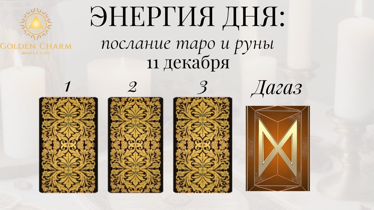 Заказать личный расклад тут✅ Прогноз на 11 декабря : что тебя ждёт Приходи на обучение Таро ✅ Выбери карту — 1, 2 или 3 — и узнай, какой путь для тебя: 1. Король Жезлов Время решительных действий и лидерства. Сегодня проявится твоя сила и способность вдохновлять окружающих. Действуй смело, уверенно и целеустремлённо. 2. Солнце Ожидаются радость, счастье и успех. День наполнен позитивной энергией, удачей и хорошим настроением. Наслаждайся моментом и делись своей радостью с окружающими. 3. Иерофант Наступило время мудрости и наставничества. Ты можешь столкнуться с важными уроками жизни или встретить мудрого советника. Откройся новым знаниям и духовному росту. Руна дня — Дагаз Символизирует перемены и трансформации. Это время новых возможностей и начала новой главы твоего пути. Напиши цифру карты + ДАГАЗ в комментариях, чтобы активировать энергию. Хочешь личный расклад? Пиши — посмотрим, что ждёт тебя: Заказать личный расклад тут✅ Обучение Таро и Рун — то