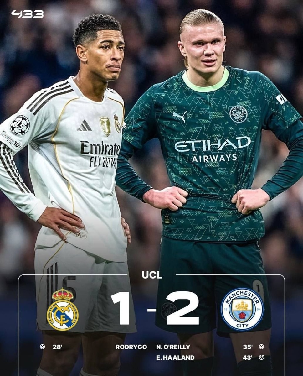 ❗️ Реал Мадрид 1:2 Манчестер Сити ⚽️ 1:0 Родриго (Беллингем) 28' 1:1 О’Райли (Гвардиол) 35' 1:2 Холанд (пен.) 43' p.s - В целом, РМ уверенно сдерживал позиционные атаки Сити : секрет успеха в компактном среднем блоке 4-4-2, с акцентом на перекрытие центра и качественными подстраховками в полуфлангах. Он стал возможен благодаря работоспособному и органичному составу Сливочных : Феде и Родриго отлично сдерживали опасный левый фланг Сити с Доку/Орайли + Себальос/Джуд грамотно страховали возникавшие разрывы между крайними и центральными защитниками + Гонсало и Вини не ходили пешком в первой линии, оказывали давление на разыгрывающих игроков гостей. - Таким образом Реалу удавалось перехватывать/отбирать мяч в своей/центральной трети и проводить контратаки + контрпрессинг подопечных Пепа вообще не работал, они раз за разом проваливались в давлении после потери мяча позволяя Мадриду улетать на пространстве. Увы, после логично гола Родриго, РМ пустил два практически на ровном месте : один