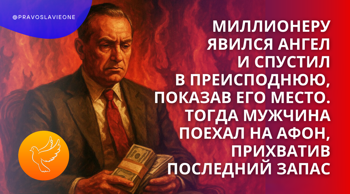 Миллионеру явился Ангел и спустил в преисподнюю, показав его место. Тогда мужчина поехал на Афон, прихватив последний запас