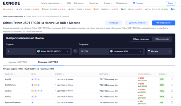 Первое, с чего начинается безопасный обмен, — поиск надёжного криптообменника в Москве. Мониторинг Exnode позволяет:
