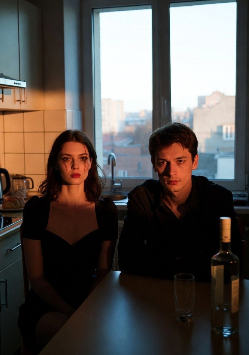 Потом она зашла в спальню. В полумраке он видел её силуэт: платье то самое, чёрное, с открытой спиной, которое она надевала только «по особым случаям». Волосы растрёпаны, макияж размазан, но не полностью — кто-то аккуратно стёр помаду с нижней губы, оставив верхнюю яркой.
