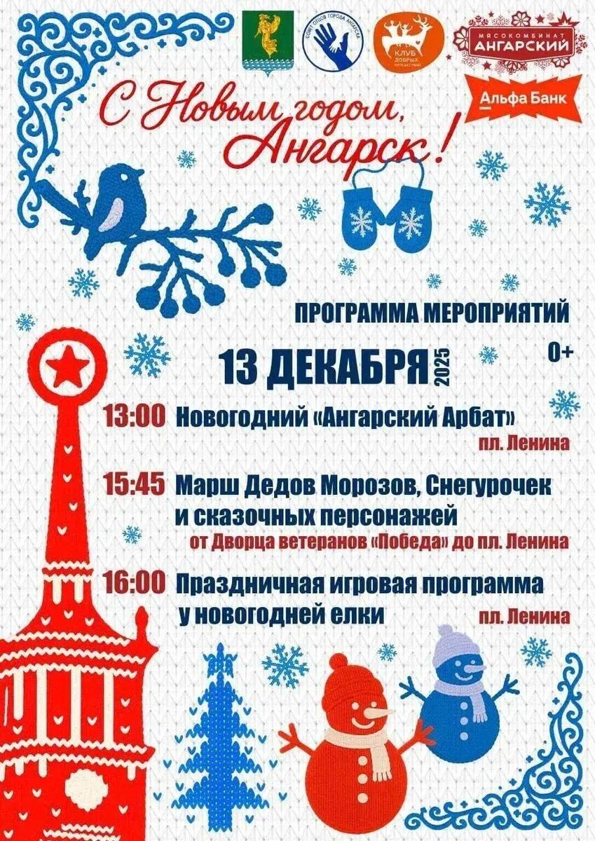 ❄❄❄❄❄❄❄❄❄❄❄❄❄ В субботу, 13 декабря 2025 года, на территории Ангарского городского округа будет проходить ежегодное шествие «Марш Дедов Морозов, Снегурочек и сказочных персонажей». Это мероприятие помогает жителям города создать праздничную атмосферу, а так же дает возможность творческого самовыражения. Под любимые новогодние песни по главной улице города пройдет яркая костюмированная колонна всеми любимых сказочных персонажей. 📌 Сбор и регистрация участников с 15.00ч. до 15.45ч. на площади у дворца ветеранов «Победа», в 15.45ч. начнется шествие. Колонна будет двигаться по улице Карла Маркса до площади Ленина, где состоятся- праздничная игровая программа, новогодний "Ангарский Арбат" и розыгрыш призов. #АНГАРСК #ДЕТСКИЙСАД92
