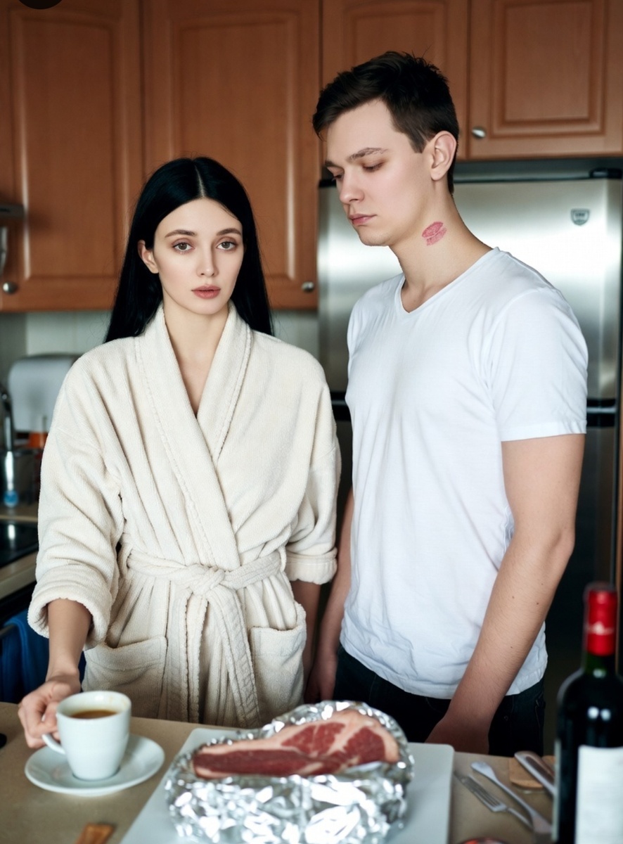Сергей написал в шесть: «Буду в восемь, целую». Потом тишина. Вика звонила раз десять, телефон был выключен. Сначала она злилась, потом начала волноваться, потом снова злилась, но уже с привкусом страха. В час ночи она завернула стейк в фольгу и ушла в спальню. Лежала в темноте, прислушиваясь к каждому шороху в подъезде. В три тридцать наконец уснула, свернувшись калачиком под его рубашкой, которая всё ещё пахла его одеколоном.