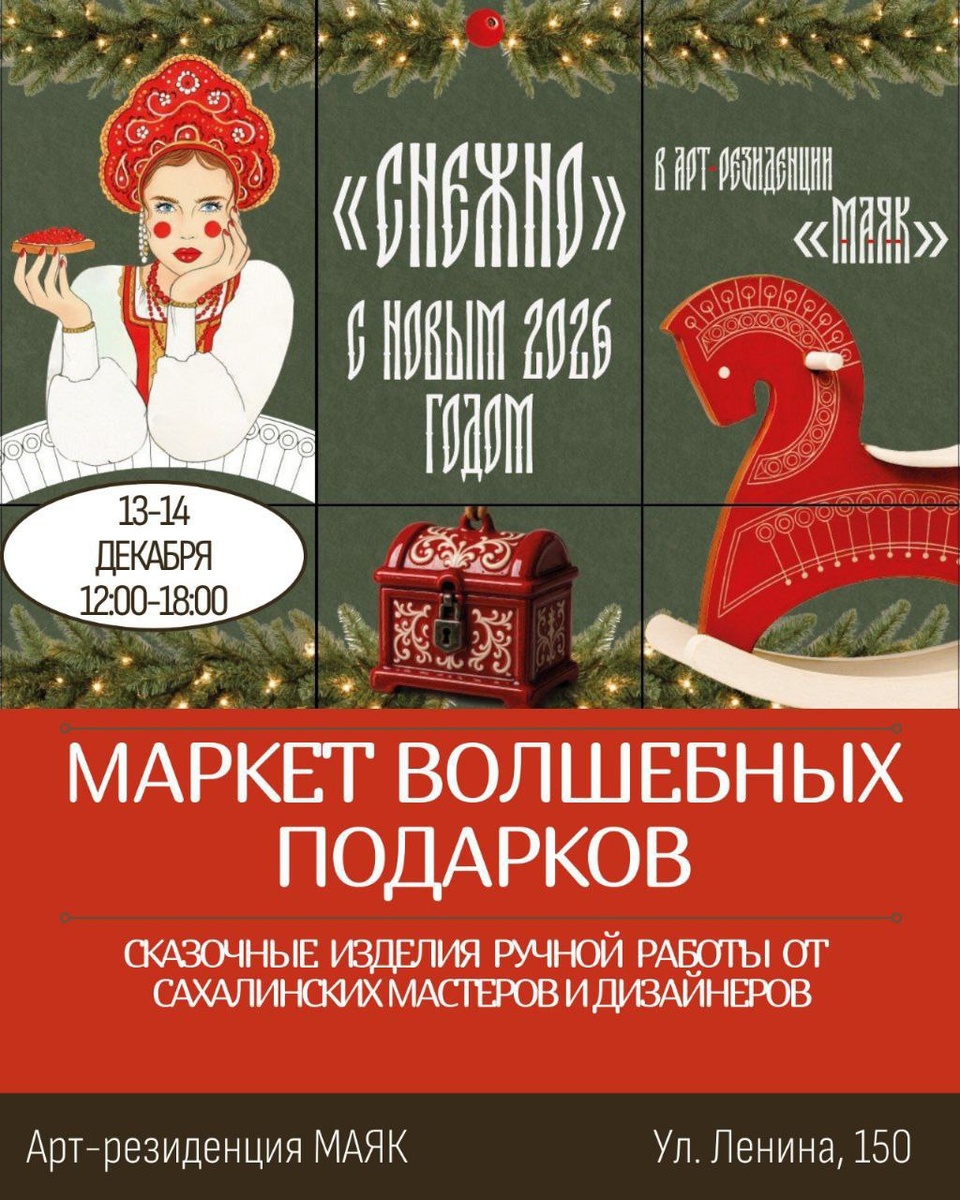❄️ Фестиваль-маркет 🔤🔤🔤🔤🔤🔤 #партнёрский 📆 13 и 14 декабря |C 12 до 18:00 📍 Арт-резиденция «Маяк» На фестивале вы увидите: ❄️ товары сахалинских производителей в сфере декоративно-прикладного искусства и hand-made ❄️ дизайнеров одежды и аксессуаров ❄️ художников и других мастеров авторского продукта ручного производства 📱 Мой бизнес 65: малого и среднего бизнеса