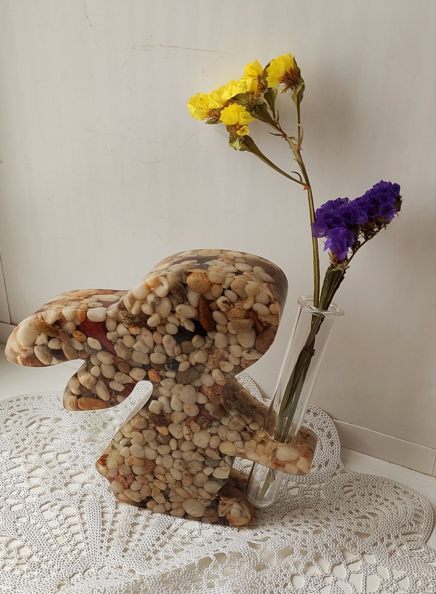 Благодаря тому, что камни полностью заполняют форму, расход смолы минимален, а изделие получается крепкое, тяжелое, основательное: