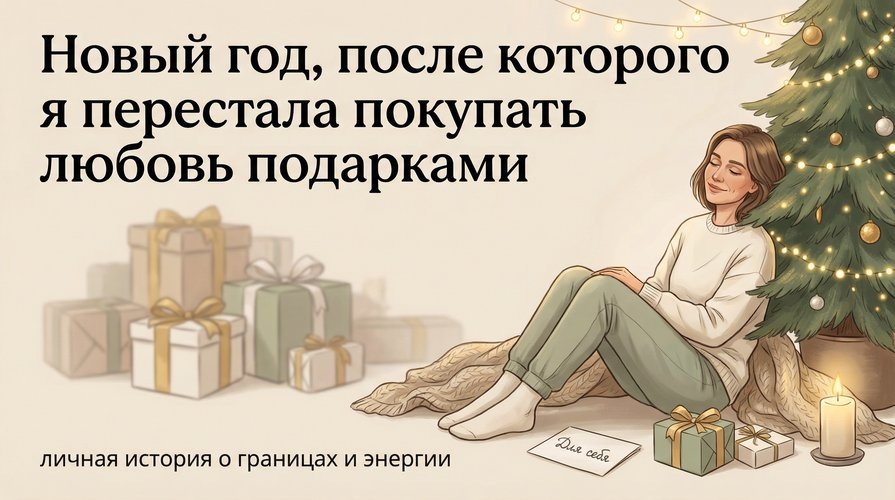 Как один декабрь научил меня дарить по‑другому — без выгорания и чувства, что я “мало дала” Честно? Я долго жила с установкой: «Если я подарю достаточно, меня точно полюбят / не обидятся / не разочаруются». Был один Новый год, после которого я поняла: так больше нельзя. У меня был идеальный план: всем — «что‑то особенное». Коллеге — сертификат в модный магазин, родным — техника, детям — дорогие игрушки, себе —… ничего, «ещё успею». Я отслеживала скидки, ночами читала отзывы, перепроверяла заказы. Внутри было не предвкушение, а постоянное напряжение. 31‑го всё выглядело красиво. Ёлка, коробки, улыбки. А внутри — пустота и тихая злость: «Столько сил, столько денег… а я сама снова в минусе — и по карте, и по энергии». В какой‑то момент я поймала себя на мысли: я не радуюсь, когда люди открывают подарки. Я внимательно считываю их реакцию — как будто от неё зависит мой «вердикт»: хорошая я или плохая. В ту же ночь я села с блокнотом и честно написала: Кому я дарю из любви. Кому — из чувс