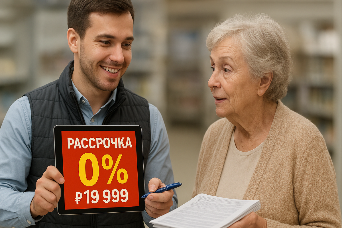 Знаете, что меня всегда настораживает? Когда пожилому человеку с пенсией 17–20 тысяч вдруг предлагают рассрочку без переплат. Сладко говорят, улыбаются, чуть ли не за руку ведут к кассе. А потом этот человек сидит дома с бумажкой, в которой мелким шрифтом написано такое, что и юристу станет плохо. Вот история Марии Николаевны, 72 года. — Мне предложили пылесос в рассрочку. Сказали — без переплат! А в итоге оказалось, что договор — это не рассрочка, а кредит. И я должна была переплатить почти 14 тысяч сверху. Узнали знакомую схему? Если да — вы не одни. Разберемся: когда рассрочка действительно выгодна, а когда это яма, в которую пенсионеров загоняют чаще всех. Что такое рассрочка на самом деле Если очень просто: рассрочка — это когда вы платите частями, но итоговая сумма остается такой же. Без процентов. Но есть нюанс: магазины часто называют рассрочкой то, что юридически является кредитом. И там уже проценты, страховки, комиссии. Когда рассрочка честная и это выгодно для вас Таких с
