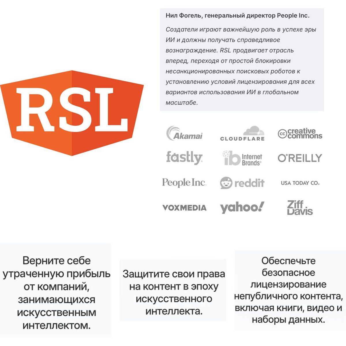 RSL — дает издателям возможность диктовать правила лицензирования и компенсации веб-краулерам, посещающим их сайты.
