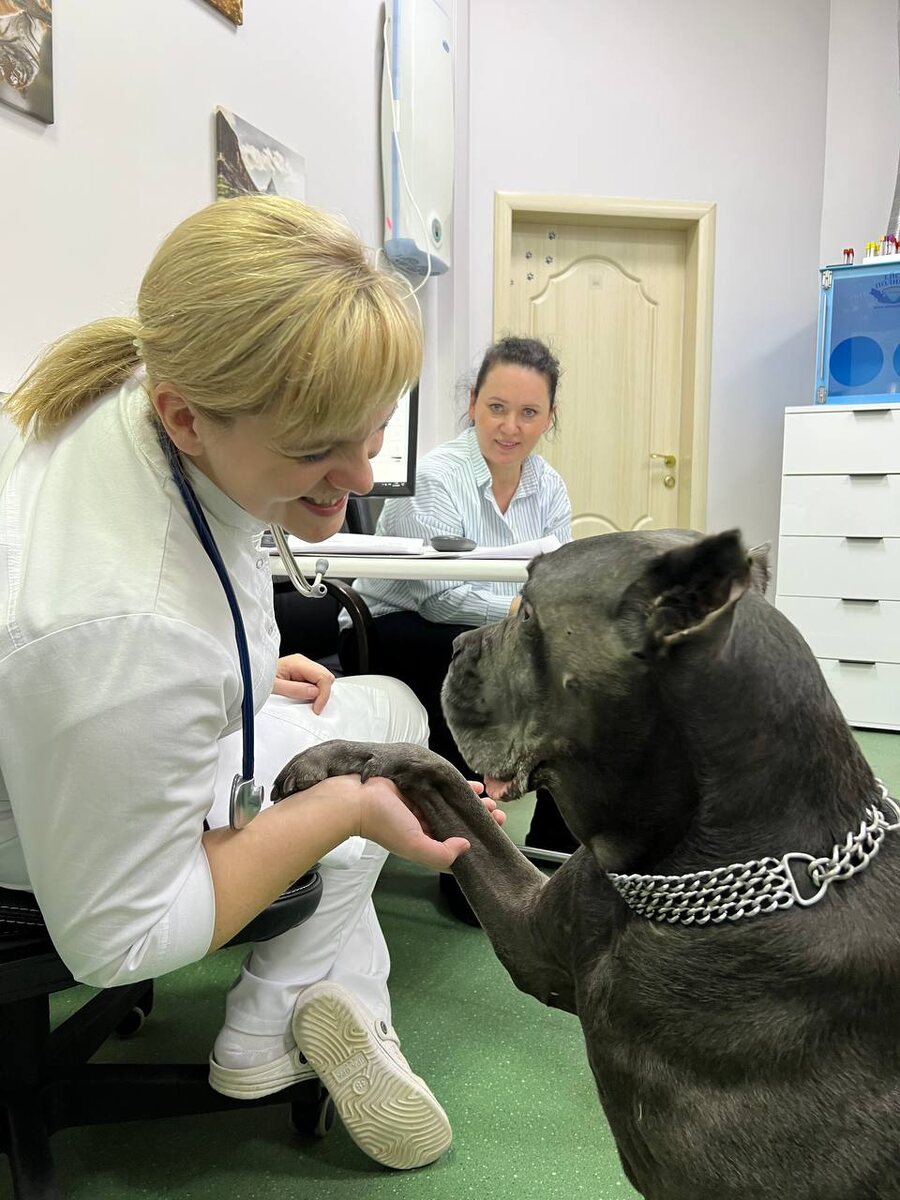 🐶 На прием к эксперту Булаковской Оксане Андреевне поступила собака породы кане корсо, 10 лет. Хозяева жаловались на вялость и резко увеличившийся живот. Поскольку в правилах нашей клиники комплексный диагностический подход, пациента внимательно осмотрели, взяли анализы и обнаружили увеличенную селезенку, а также внутренние и подчелюстные лимфоузлы. Операция по удалению селезенки была бы необходима при таких изменениях, но анализ крови показал, что дело не в обычном заболевании. В крови было много лейкоцитов — клеток, отвечающих за иммунитет, но все они были патологическими. Это состояние называется лейкемоидная реакция, когда лейкоциты сильно увеличиваются из-за инфекций или заболеваний, например, рака. Собака не могла перенести операцию, так как ее иммунная система была ослаблена. Заподозрив лейкоз, мы отправили анализы в Санкт-Петербург для точной диагностики, так как лечение при разных типах лейкоза сильно отличается. Через несколько дней пришел результат: у собаки хронический