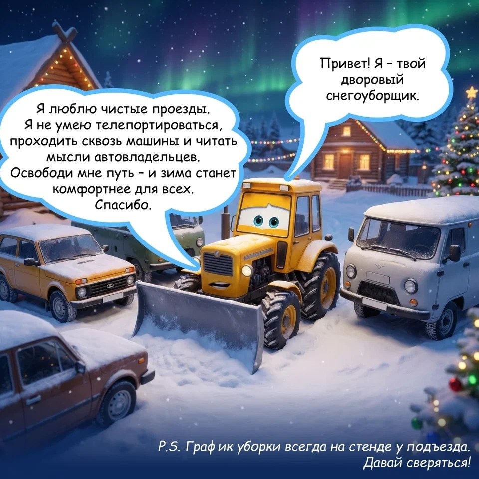 Чистый и уютный двор зимой – это результат общих усилий. Всего один неправильно припаркованный автомобиль может доставить неудобство всем. Он создаёт препятствие для снегоуборочной техники, а в экстренной ситуации может стать помехой для служб быстрого реагирования. Уважайте труд коммунальных служб и проявляйте заботу о соседях, чтобы придомовая территория оставалась безопасной и комфортной для всех жителей.