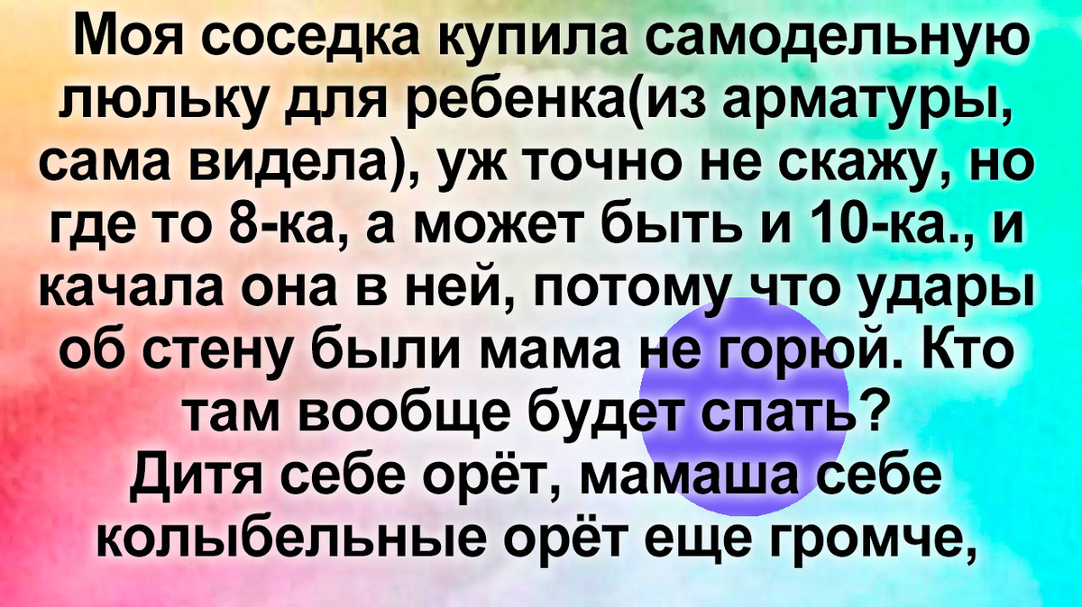 Она меня просто достала такими закидонами. А потом к нам в соседнюю квартиру приехала пара помоложе 😂и бабка переключилась на них. По ходу достала их так, что раз я услышала через дверь - Бабка, ещё раз придёшь, я тебе дам люлей так, что мало тебе не покажется.