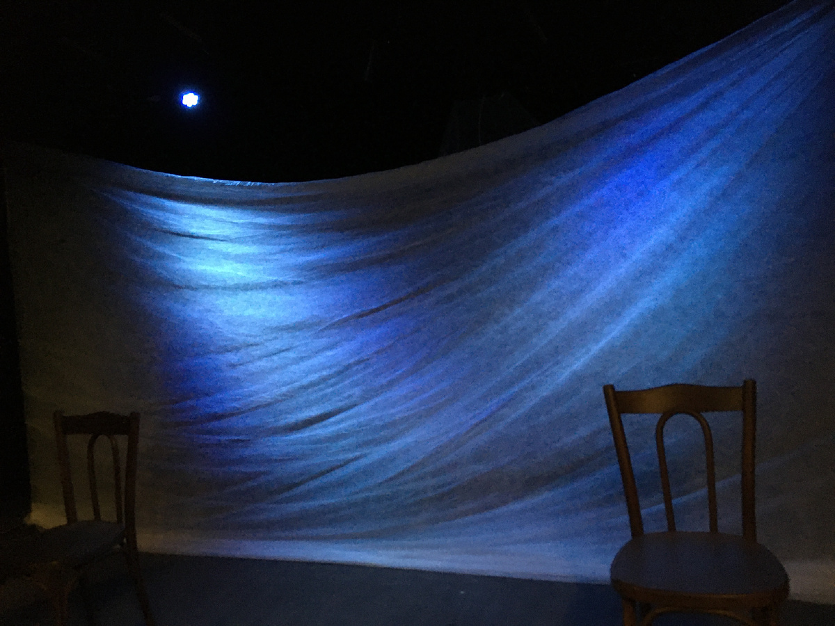 Сцена представляет собой зрительный зал, где все кресла укрыты призрачными белыми чехлами и среди них обитают отслужившие свой сценический век , артисты.