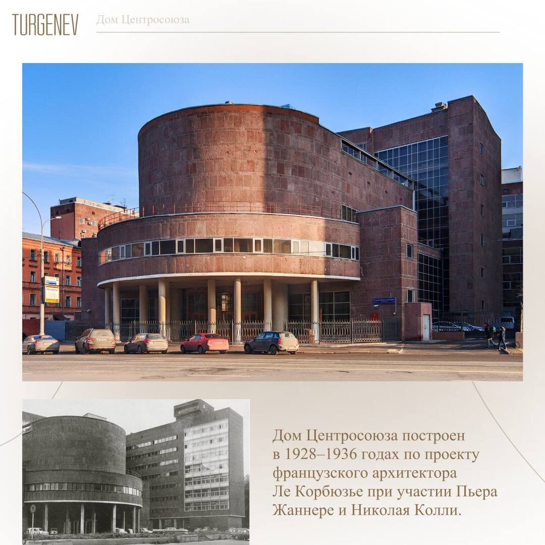 Чем шокировал Москву Дом Центросоюза? Ранее мы делились с вами маршрутом, в котором уже упоминали этот памятник архитектуры. Сегодня обсудим его подробнее. 📜Дом Центросоюза на Мясницкой — это здание-манифест. Спроектированный легендарным Ле Корбюзье в соавторстве с Пьером Жаннере и Николаем Колли, он в 1930-х шокировал москвичей своим радикально «не русским» видом. Сейчас это объект культурного наследия регионального значения, но тогда он был смелой утопией. Интересный факт: Корбюзье предлагал снести старую Москву и построить новые кварталы по своему принципу — Дом Центросоюза стал своеобразной «репетицией» этой грандиозной, но неосуществленной идеи. В разное время в здании размещались различные административные учреждения, с 1991 г. в нем располагаются Федеральная служба государственной статистики (Росстат) и Федеральная служба по финансовому мониторингу (Росфинмониторинг). 🏛В окружении TURGENEV — разный архитектурный контекст: как авангардный дух Центросоюза, так и классическо