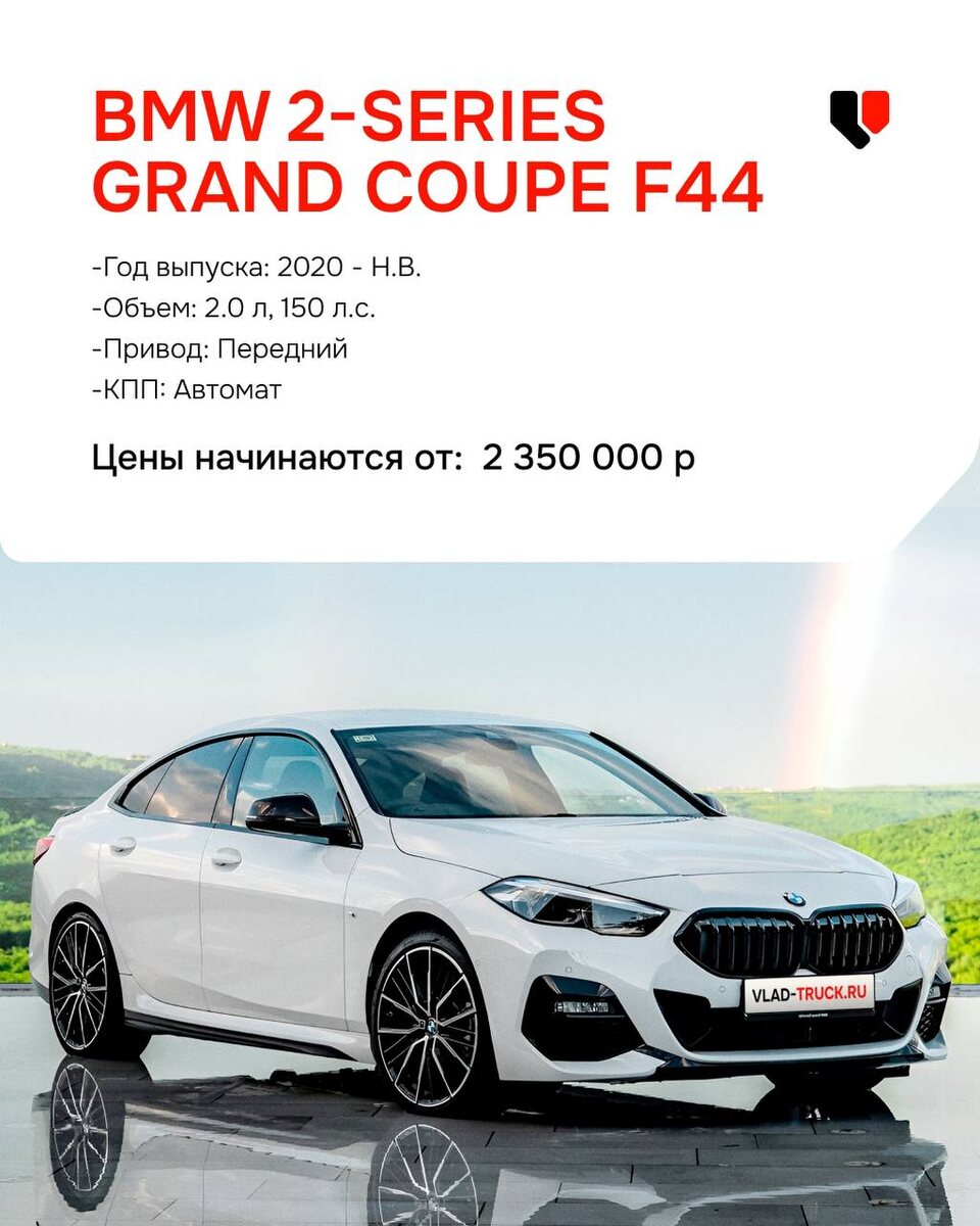 Они не попали под новый утиль сбор 😊 BMW 2-Series Grand Coupe F44 -Год выпуска: 2020 - Н.В. -Объем: 2.0 л, 150 л.с. -Привод: Передний -КПП: Автомат Цены начинаются от: 2 350 000р. BMW X2 18d F39 -Год выпуска: 2017 - 2023 -Объем: 2.0 л, 150 л.с. -Привод: Передний -КПП: Автомат Цены начинаются от: 2 400 000р. BMW X1 18d U11 -Год выпуска: 2022 - Н.В. -Объем: 2.0 л, 150 л.с. -Привод: Передний -КПП: Робот Цены начинаются от: 3 200 000р. Mercedes-Benz A-Class V177 -Год выпуска: 2018 - 2023 -Объем: 2.0 л, 150 л.с. -Привод: Передний -КПП: Робот Цены начинаются от: 2 300 000р. Mercedes-Benz С-Class W205 -Год выпуска: 2018 - 2023 -Объем: 1.6 л, 122 л.с. -Привод: Задний -КПП: Автомат Цены начинаются от: 2 300 000р. Mercedes-Benz GLB-Class X247 -Год выпуска: 2019 - Н.В. -Объем: 2.0 л, 150 л.с. -Привод: Передний -КПП: Робот Цены начинаются от: 2 850 000р. Audi Q2 GA -Год выпуска: 2020 - Н.В. -Объем: 2.0 л, 150 л.с. -Привод: Передний -КПП: Робот Цены начинаются от: 2 400 000р. Audi Q