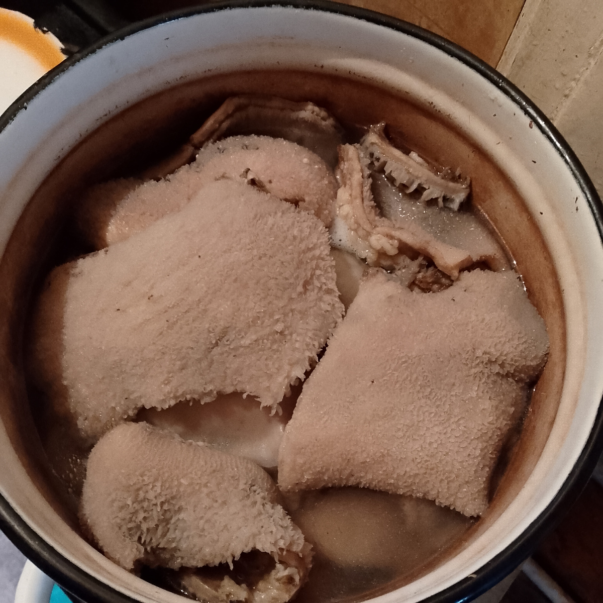 Про еду сегодня. Был у меня говяжий рубец. Оказывается ели его и короли и наш всем известный Пётр 1 любил с ним пирожки. Петру повезло ему самому рубец не чистить. Я ж не царица и не королева, чистила сама. Чистить легко, если пересыпать, сложив слоями, содой и солью, залить водой часов на 5. Воду слить и налить чистой. У меня стоял ещё часа 3 точно. На улице прохладно и проблем с этим не было. Зелень сходит очень легко даже понравилось чистить, края и где не очистилось отложила собаке. Говорят, полезно. Особенно в сыром виде. Белка ест с удовольствием. У меня ещё есть немного в морозилке. Мне привычней называть требуха, но это без разницы. Варила я часа 4, просто посолила. Воду слила. Лёгкое в воде остужаю оно так сочнее, а здесь считаю не стоит. Сразу решила сделать салат. Рецептов много, но у меня свой. Обжарила лук, сырая морковь на крупной тёрке, приправа для корейской моркови, соевый соус и уксус по вкусу, растительное масло, попробовала и посолила немного ещё. Рубец нареза