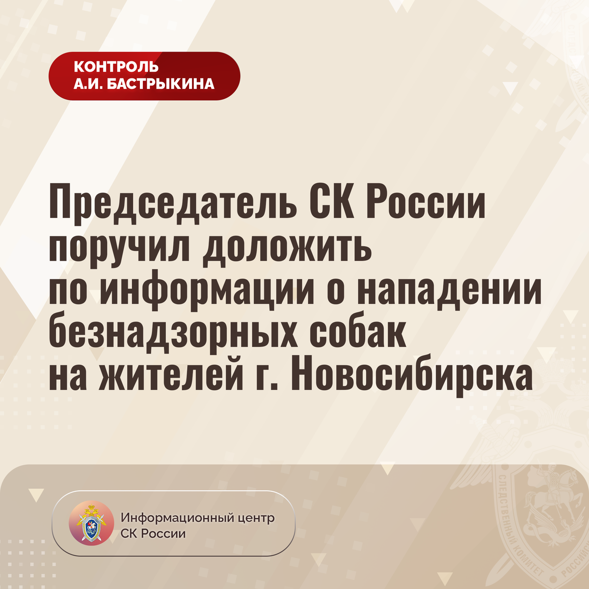 Председатель СК России поручил доложить по информации о нападении безнадзорных собак на жителей г. Новосибирска