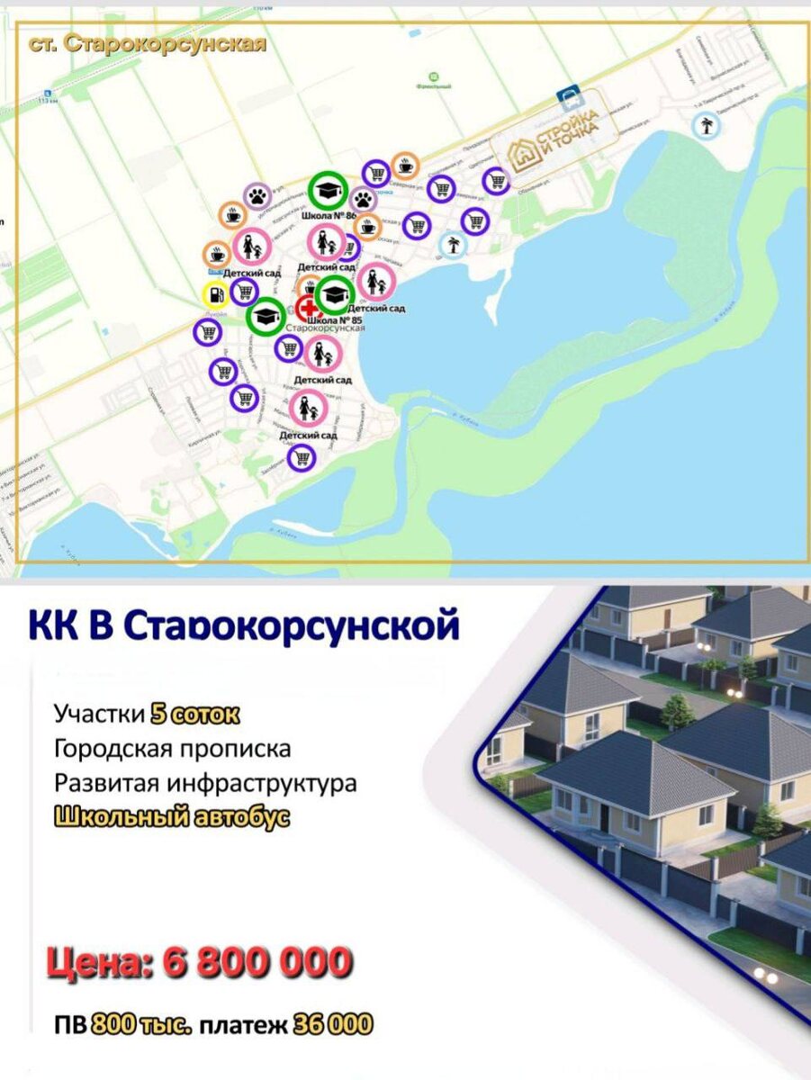 📍Стц Старокорсунская 🏡Дом 100м2 общей площадью 1 этаж 60м2 Мансарда 40м2 🏡5 соток ИЖС, 15квт, 3фазы, электрокотел 1 этаж в предчистовой отделке, мансарда в черновой 💰Цена: 6.800.000 💸Пв 800 тыс Тел: 8-938-411-18-21 Олеся +7 964 915-47-32 Владимир